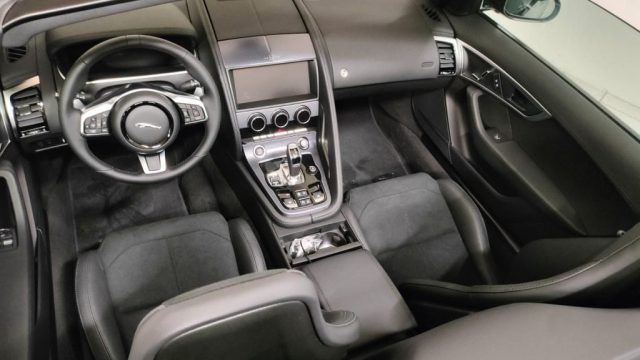 ABS, Airbag, Airbag guida, Airbag laterali, Airbag laterali, Airbag passeggero, Airbag Passeggero, Aletta parasole anteriori, Allarme perimetrale e Immobilizer, Android Auto, Antifurto, Apple CarPlay, Autoradio, Autoradio digitale, Badge F-Type, Black Design Pack, Bluetooth, Bocchette di ventilazione anteriori a scomparsa, Calotte specchietti retrovisori esterni in tinta con la carrozzeria, Cambio automatico a 8 rapporti, Capote ad azionamento elettrico nera, Cerchi in lega, Cerchi in lega da 20", Chiusura centralizzata, Climatizzatore, Climatizzatore a una zona, Colonna dello sterzo regolabile elettricamente, Comandi marce al volante, Computer di bordo, Connected Navigation Pro, Console centrale in alluminio Delta, Controllo trazione, Controllo vocale, Cruise Control, DAB (Digital Audio Broadcasting), Differenziale aperto con Torque Vectoring by Braking (TVBB), Display Interattivo per il conducente, Dispositivo di ausilio alla frenata di emergenza (EBA), Doppio portabicchiere anteriore, ESP, Fari a LED con luci diurne caratteristiche, Fari LED, Filtro antipolline, Frangivento, Frenata d'emergenza assistita, Frenata di emergenza autonoma, Freni anteriori da 355 mm e posteriori da 325 mm, Freno di stazionamento elettronico (EPB), Griglie nere, Hi-Fi Meridian, Illuminazione console superiore, Immobilizzatore elettronico, InControl Remote, Interni in pelle e alcantara, Interni Standard, Lane Keep Assist, Leva anti-intrappolamento bagagliaio, Logo e scritta Jaguar, Luci di coda a LED, Maniglie delle portiere esterne a filo, Meridian Surround Sound System 825W, Monitoraggio delle condizioni del guidatore, Online Pack, Palette cambio Silver, Parabrezza anti infrarossi, Pinze dei freni standard, Pinze freni rosse, Presa 12V e USB nella console centrale, Pulsante Start, Regolazione elettrica sedili, Ripartitore della forza frenante (EBD), Rivestimento padiglione Ebony in tessuto Morzine, Scarichi attivi selezionabili, Scomparto portaoggetti, Secure Tracker 12 mesi, Sedili anteriori elettrici a 6 regolazioni, Sensore di pioggia, Sensori di parcheggio anteriori e posteriori, Sensori di parcheggio posteriori, Servosterzo, settaggio guida sportiva, Sistema di monitoraggio pressione pneumatici (TPMS), Navigatore satellitare, Sistema di protezione Roll-over, Sistema di riparazione pneumatici, Sistema frenante antibloccaggio (ABS), Soglie di ingresso in metallo con logo R-Dynamic, Sospensioni passive, Specchietti elettrici/ripiegabili, Specchietti laterali elettrici, Specchietti retrovisori esterni riscaldabili, Specchietto retrovisore interno fotocromatico, Spoiler posteriore mobile, Sport Pack, Tappentini con bordo in pelle, Telecamera per parcheggio assistito, Telecamera posteriore, Tergicristalli con sensore pioggia, Volante in pelle, Volante non riscaldabile