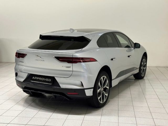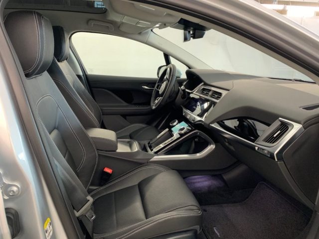 ABS, ABS, Adaptive Cruise Control, Airbag, Airbag a tendina, Airbag guida, Airbag laterali, Airbag laterali, Airbag passeggero, Airbag Passeggero, Airbag testa, Alette parasole con luce di cortesia, Allarme perimetrico, All Surface Progress Control (ASPC), All Wheel Drive (AWD), Android Auto, Antifurto, Apertura portellone posteriore elettrica (apertura /chiusura), Apple CarPlay, Appoggiatesta posteriori, Autoradio, Autoradio digitale, Avviso mancato allacciamento cinture di sicurezza, Badge EV400, Badge SE, Blind Spot Assist, Bluetooth, Bracciolo, Bracciolo anteriore, bracciolo posteriore, Bracciolo posteriore centrale, Cambio automatico, Cambio Automatico, Cavo di ricarica multifunzione (Cavo Modo 2 16A), Cavo di ricarica pubblico, Cerchi in lega, Cerchi in lega da 20", Chiusura centralizzata, Chiusura centralizzata, Clima Automatico Bizona, Climatizzatore, Climatizzatore automatico a due zone, Comando Chiusura/Apertura centralizzata presente sulla portiera del guidatore, Controllo adattivo di crociera con Stop & Go, Controllo elettronico della corsia, Controllo trazione, Controllo volume dinamico, Cornici dei finestrini laterali cromate, Cristalli ad attenuazione luce solare, Cruise Control, Differenziale aperto + Torque Vectoring, Display Interattivo per il conducente, Dispositivo di ausilio alla frenata di emergenza (EBA), Driver Condition Monitor, Dynamic Stability Control (DSC), ESP, Fari a LED con luci diurne caratteristiche, Fari con livellamento automatico, Fari LED, Frenata d'emergenza assistita, Freno di emergenza, Freno di stazionamento elettronico (EPB), Ganci nel vano di carico, Getto lavafari, Griglia Gloss Black con rifinitura cromata satinata, Hill Launch Assist - assistenza per partenza in salita, Illuminazione console superiore, Immobilizzatore elettronico, InControl Apps, InControl Pro Services per il periodo di garanzia e Wi-fi Hotspot, InControl Remote, InControl Secure, Indicatore usura pastiglie freni, indicatori di cambio corsia, Inserti in Gloss Black, Interni in pelle, Jaguar Drive Control, Keyless Entry, Lame paraurti anteriore in Gloss Black, Lane Keep Assist, Logo e scritta Jaguar, Low Traction Launch, Luci di lettura posteriori a LED, Luci fendinebbia posteriori, Lunotto Riscaldabile con Timer, Maniglie delle porte anteriori interne con interruttori di blocco separati, Maniglie delle portiere esterne a scomparsa, Meridian Sound System (380W), Monitor rilevamento di uscita laterale passeggero posteriore, Navigation Pro, Parabrezza acustico laminato, Paraurti posteriore con grembialatura Gloss Black, Park Assist, Portabicchieri anteriori e posteriori, Portaoggetti anteriore, Portaoggetti richiudibile, Presa 12V nel portabagagli, Prese ausiliari, Radio AM/FM, Regolazione elettrica sedili, Ricarica Programmabile, Riconoscimento dei segnali stradali, Rilevatore temperatura esterna, Rilevazione del traffico in retromarcia, Rivestimento padiglione in Morzine colore Light Oyster, Rivestimento portiere in Gloss Black, Schienale post 40/20/40, Sedile guida reg. in altezza, Sedile posteriore sdoppiato, Sedili anteriori elettrici a 10 regolazioni con funzione memoria, Sedili posteriori ripiegabili 60/40, Sedili sport Ebony in pelle goffrata con interni Ebony/Ebony, Sensore di luce, Sensore di pioggia, Sensori di parcheggio posteriori, Servosterzo, Servosterzo elettrico (EPAS) ad assistenza variabile, Sistema di chiusura per bambini ad azionamento elettrico, Sistema di monitoraggio della pressione degli pneumatici (TPMS), Navigatore satellitare, Sistema di riparazione pneumatici, Sistema frenante rigenerativo ottimizzato, Smart Settings, Sospensioni passive, Sospensioni spirali, Specchietti laterali elettrici, Specchietti retrovisori esterni in tinta con la carrozzeria, Specchietto retrovisore interno fotocromatico, Spoiler portellone posteriore, Stivaggio per occhiali da sole, Stivaggio sotto i sedili posteriori, Tappetini Ebony, Telecamera per parcheggio assistito, Telecamera posteriore con guida al parcheggio, Tergicristalli con sensore pioggia, Tergicristalli intermittenti variabili, Terzo poggiatesta posteriore, Tetto standard, Touch Pro Duo, Touch Pro System, Vano di Carico - Punti di ancoraggio bagagli, Vetro attenuante luce solare per parabrezza, Voice control, Volante Sport in pelle goffrata Soft