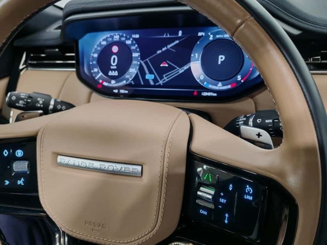 ABS, Accesso unico al veicolo (configurabile), Adaptive Cruise Control, Adaptive Cruise Control con Steering Assist, Adaptive Dynamics, Airbag, Airbag (anteriori, laterale anteriore e a tendina per finestrino laterale), Airbag laterali, Airbag laterali, Airbag Passeggero, Airbag testa, Aletta parasole Doppia per il conducente/Singola per il passeggero, Allarme Perimetrale, All Terrain Info Centre, All Terrain Progress Control (ATPC), All Wheel Drive (AWD), All Wheel Steering, Altezza di accesso automatica, Android Auto, Antifurto, Assistenza alla protezione degli occupanti, Autoradio, Autoradio digitale, Badge Range Rover, Blind Spot Assist, Bluetooth, Bluetooth connectivity, Box refrigeratore nella console centrale anteriore, Braccioli anteriori per guidatore e passeggero, Bracciolo, Bracciolo centrale posteriore, Cambio automatico a 8 rapporti, Carico del bagagliaio semplificato, Cerchi in lega, Chiusura automatica delle portiere configurabile, Chiusura centralizzata, Climatizzatore, Climatizzatore a 4 zone, Colonna dello sterzo regolabile elettricamente, Comandi marce al volante, Comando della climatizzazione a tre zone, Comfort Pack, Console Centrale con box porta oggetti e bracciolo, Consolle centrale con bracciolo, Controllo elettronico della corsia, Controllo elettronico della trazione (ETC), Controllo trazione, Copertura del vano di carico ripiegabile automaticamente, Copertura motore, Cornering Brake Control (CBC, Controllo della frenata in curva), Cruise Control, DAB - Digital Audio Broadcasting, Differenziale aperto con Torque Vectoring by Braking (TVBB), Dispositivo di Ausilio alla Frenata di Emergenza (EBA), Dispositivo per Frenata di Emergenza, Driver Condition Response, Dynamic Stability Control (DSC), Esclusione Gancio di traino estraibile, ESP, Extended Leather Upgrade, Fari a LED, Fari automatici, Fari automatici (sensore crepuscolare), Fari con livellamento automatico, Fari fendinebbia anteriori, Fari LED, Fari Pixel LED con luci diurne caratteristiche, Fendinebbia, Filtraggio aria/Ionizzazione+Filtro per agenti patogeni/PM2.5/CO2, Filtro antiparticolato, Finestrini elettrici con chiusura\apertura one-touch, Finiture in Noble Chrome, Frenata d'emergenza assistita, Freno di stazionamento elettrico (EPB), Full Extended Leather SV Bespoke Upgrade, Ganci nel vano di carico, Getti lavavetro riscaldati, Head-up display, Head-up Display, Hill Descent Control (HDC), Hill Launch Assist, Immobilizzatore elettronico, InControl Remote, Indicatori di direzione negli specchietti laterali, Indicatori direzionali animati, Inserti in betulla nera Natural, Inserti in noce Natural Brown, Interactive Driver Display, Interni in pelle, Keyless Entry, Lane Keep Assist, Lavafari, Low Traction Launch, Luce vano di carico, Luci fendinebbia posteriori, Lunotto riscaldato, Maniglie delle portiere a scomparsa, Maniglie di sostegno anteriori e posteriori, Meridian 3D Surround Sound System, Monitor rilevamento collisione in uscita posteriore, Monitor rilevamento traffico in uscita posteriore, Nessuno schermo posteriore, Nickel Atlas Exterior Pack, Online Pack con Data Plan, Parabrezza con attenuazione dei raggi solari, Parabrezza laminato con isolamento acustico, Parabrezza laminato e vetri posteriori temperati, Parabrezza riscaldato, Park Assist, Pedaliera in metallo lucidato, Pinze dei freni Nere, Pinze dei freni non verniciate, Pivi Pro (Connected), Portabicchieri anteriori e posteriori, Portellone posteriore motorizzato, Portiere con sistema Soft Close, Premium Upgrade Interior Pack, Preparazione per il gancio elettrico, Presa 12V nella zona poggiapiedi, Prese USB, Regolazione elettrica sedili, Rete divisoria per vano di carico, Ricarica dispositivi Wireless, Riconoscimento dei segnali stradali, Ripartitore della forza frenante (EBD), Rivestimento del padiglione Ebony/Caraway Duo Tone, Rivestimento del padiglione in tessuto Ebony/Perlino, Scomparto portaoggetti superiore, Secure Tracker 12 mesi, Sedili Ebony in pelle perforata Semi-Anilina con interni in Ebony, Sensore di luce, Sensore di pioggia, Sensori di parcheggio posteriori, Sensori parcheggio anteriori e posteriori, Servosterzo, Servosterzo elettrico (EPAS), Shadow Exterior Pack, Sistema di chiusura per bambini ad azionamento elettrico, Sistema di monitoraggio pressione pneumatici (TPMS), Navigatore satellitare, Sistema Frenante AntiBloccaggio (ABS), Sistema posteriore di ancoraggio ISOFIX per seggiolino bambini, Soglie illuminate con scritta Range Rover, Sospensioni pneumatiche, Sospensioni pneumatiche elettroniche, Specchietti laterali elettrici, Specchietto retrovisore interno fotocromatico, Streaming Bluetooth, Surround Camera System con assistenza al traino e Wade Sensing, Tappetini, Tappetini Ebony, Tappetini SV Bespoke, Telecamera per parcheggio assistito, Tendine parasole elettrica per i vetri posteriori, Tenuta del freno, Tergicristalli con sensore pioggia, Tergilunotto posteriore, Terrain Response 2, Terza luce di arresto centrale, Tetto in tinta con la carrozzeria, Tetto panorama, Tetto panoramico fisso, Tetto panoramico scorrevole, Vano di carico - punti di ancoraggio bagagli, Vetri oscurati, Voice control, Volante in pelle con comandi multifunzione, Volante in pelle pieno fiore, Volante NON riscaldato con comandi multifunzione, Wi-Fi abilitato con Data Plan