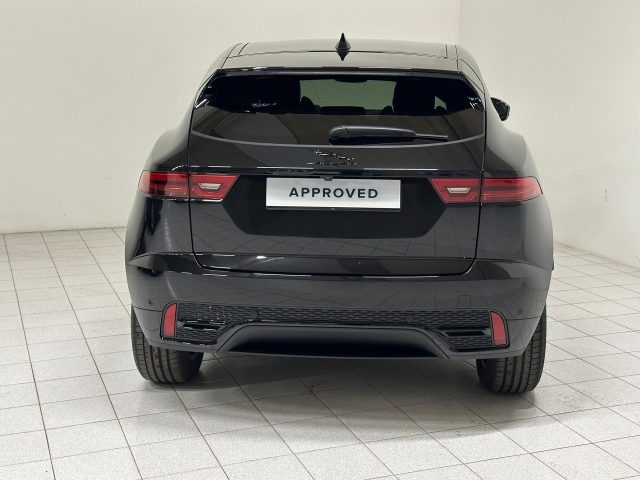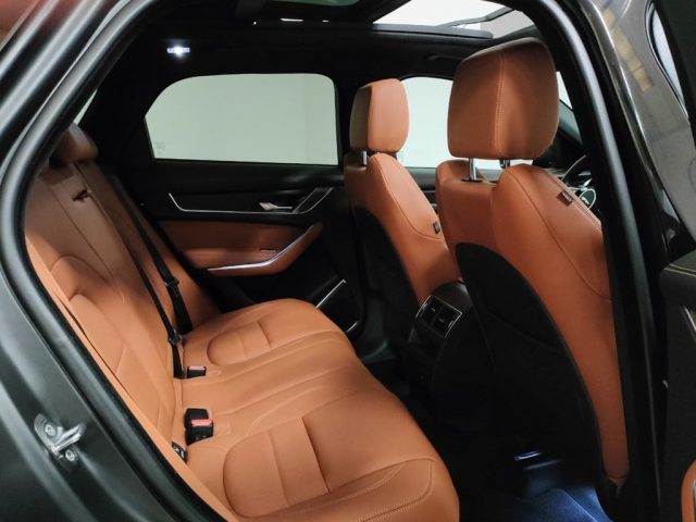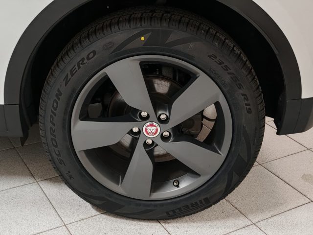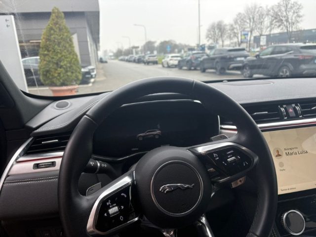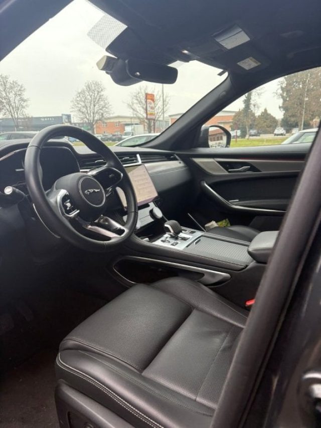 ABS, Adaptive Cruise Control, Adaptive Surface Response (AdSR), Airbag, Airbag laterali, Airbag laterali, Airbag Passeggero, Airbag testa, Alette parasole con luce di cortesia, Allarme perimetrico, All Surface Progress Control (ASPC), Android Auto, Antifurto, Apertura portellone posteriore elettrica (apertura /chiusura), Apple CarPlay, Assist alla frenata di emergenza, Autoradio, Autoradio, Autoradio digitale, Avviso cinture di sicurezza, Black Design Pack, Blind Spot Assist, Blind Spot Monitor, Bluetooth, Bluetooth, Bocchette climatizzatore per i passeggeri posteriori, Bracciolo, Bracciolo anteriore, Cambio automatico, Cerchi in lega, Cerchi in lega, Chiusura automatica delle portiere configurabile, Chiusura centralizzata, Chiusura centralizzata telecomandata, Climatizzatore, Climatizzatore a 2 zone, Climatizzatore automatico, Climatizzatore bi-zona, Computer di bordo, Console centrale con bracciolo, Controllo trazione, Copertura del vano di carico, Cruise control, Cruise Control, Cruise control adattivo, DAB (Digital Audio Broadcasting), Differenziale elettronico attivo con Torque Vectoring by braking, Dispositivo di ausilio alla frenata di emergenza (EBA), Dispositivo di protezione per errato rifornimento carburante diesel, Dispositivo per frenata di emergenza, Doppio portabicchieri frontale, Doppio scarico posteriore, Dynamic Stability Control (DSC), Eco HMI con analisi dei parametri di guida, Efficient Drive Line, ESP, Fari a LED, Fari automatici, Fari full-LED, Fari LED, Filtro antiparticolato, Frenata automatica di emergenza, Frenata d'emergenza assistita, Freno di stazionamento elettrico, Freno di stazionamento elettrico (EPB), Ganci nel vano di carico, Hill Launch Assist - assistenza per partenza in salita, Illuminazione console superiore, Illuminazione interna, Immobilizzatore elettronico, InControl Remote, Indicatori cambio corsia, Interni in pelle, Interni in pelle, Isofix, Lane Assist, Lane Keep Assist, Limitatore di velocità, Logo e scritta Jaguar, Low friction launch, Luce stop in alta posizione nel centro, Luce vano di carico, Luci Diurne A Led, Luci fendinebbia posteriori, Lunotto riscaldato, Meridian Sound System (380W), Monitoraggio angolo cieco, Monitoraggio delle condizioni del guidatore, Monitoraggio pressione pneumatici, Monitor rilevamento collisione in uscita posteriore, Monitor rilevamento traffico in uscita posteriore, Navigatore satellitare, Online Pack con Data Plan, Paddle Shift - Comandi marce al volante con finitura Noble, Parabrezza anteriore, Park distance control, Pivi Pro (Connected), Pneumatici estivi, Pneumatici quattro stagioni, Poggiatesta anteriori passivi con prevenzione del colpo di frusta, Poggiatesta centrale posteriore, Poggiatesta posteriori, Portellone elettrico, Presa USB, Prese ausiliari, Pulsante Start, Radio DAB, Rete portaoggetti nel vano di carico, Riconoscimento dei segnali stradali, Riconoscimento dei segnali stradali, Rilevatore temperatura esterna, Ripartitore della forza frenante (EBD), Rivestimento padiglione in Morzine colore Light Oyster, Secure Tracker 12 mesi, Sedile posteriore ribaltabile 40:20:40, Sedile posteriore sdoppiato, Sedili elettrici con memoria, Sedili in pelle goffrata Ebony con interni Ebony/Ebony, Sensore di luce, Sensore di pioggia, Sensore luci, Sensore pioggia, Sensori di parcheggio assistito anteriori, Sensori di parcheggio assistito posteriori, Sensori di parcheggio posteriori, Sensori parcheggio anteriori e posteriori, Sequenza di accensione: movimenti, quadrante e illuminazione, Serbatoio carburante standard (65L), Servosterzo, Servosterzo elettrico (EPAS), Sistema di avviso di distanza, Sistema di chiusura per bambini ad azionamento elettrico, Sistema di controllo pressione pneumatici (TPMS), Navigatore satellitare, Sistema di rilevazione della stanchezza, Sistema frenante antibloccaggio (ABS), Sistema posteriore di ancoraggio ISOFIX per seggiolino bambini, Soglie di ingresso con scritta Jaguar, Sospensioni passive, Sound system, Specchietti laterali elettrici, Specchietto retrovisore interno fotocromatico, Spoiler portellone posteriore, Start/Stop Automatico, Supporto lombare, Telecamera per parcheggio assistito, Telecamera posteriore, Tergicristalli con sensore pioggia, Tergilunotto, Tetto in tinta con la carrozzeria, Tetto standard, Touch Screen, Trazione integrale, Usb, Vano di Carico - Punti di ancoraggio bagagli, Veicolo non fumatori, Vetri oscurati, Vetri standard, Voice control, Volante in pelle con comandi multifunzione, Volante multifunzione