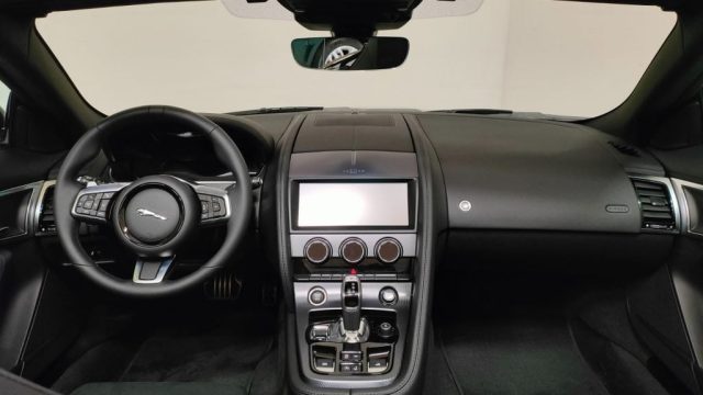 ABS, Airbag, Airbag guida, Airbag laterali, Airbag laterali, Airbag passeggero, Airbag Passeggero, Aletta parasole anteriori, Allarme perimetrale e Immobilizer, Android Auto, Antifurto, Apple CarPlay, Autoradio, Autoradio digitale, Badge F-Type, Black Design Pack, Bluetooth, Bocchette di ventilazione anteriori a scomparsa, Calotte specchietti retrovisori esterni in tinta con la carrozzeria, Cambio automatico a 8 rapporti, Capote ad azionamento elettrico nera, Cerchi in lega, Cerchi in lega da 20", Chiusura centralizzata, Climatizzatore, Climatizzatore a una zona, Colonna dello sterzo regolabile elettricamente, Comandi marce al volante, Computer di bordo, Connected Navigation Pro, Console centrale in alluminio Delta, Controllo trazione, Controllo vocale, Cruise Control, DAB (Digital Audio Broadcasting), Differenziale aperto con Torque Vectoring by Braking (TVBB), Display Interattivo per il conducente, Dispositivo di ausilio alla frenata di emergenza (EBA), Doppio portabicchiere anteriore, ESP, Fari a LED con luci diurne caratteristiche, Fari LED, Filtro antipolline, Frangivento, Frenata d'emergenza assistita, Frenata di emergenza autonoma, Freni anteriori da 355 mm e posteriori da 325 mm, Freno di stazionamento elettronico (EPB), Griglie nere, Hi-Fi Meridian, Illuminazione console superiore, Immobilizzatore elettronico, InControl Remote, Interni in pelle e alcantara, Interni Standard, Lane Keep Assist, Leva anti-intrappolamento bagagliaio, Logo e scritta Jaguar, Luci di coda a LED, Maniglie delle portiere esterne a filo, Meridian Surround Sound System 825W, Monitoraggio delle condizioni del guidatore, Online Pack, Palette cambio Silver, Parabrezza anti infrarossi, Pinze dei freni standard, Pinze freni rosse, Presa 12V e USB nella console centrale, Pulsante Start, Regolazione elettrica sedili, Ripartitore della forza frenante (EBD), Rivestimento padiglione Ebony in tessuto Morzine, Scarichi attivi selezionabili, Scomparto portaoggetti, Secure Tracker 12 mesi, Sedili anteriori elettrici a 6 regolazioni, Sensore di pioggia, Sensori di parcheggio anteriori e posteriori, Sensori di parcheggio posteriori, Servosterzo, settaggio guida sportiva, Sistema di monitoraggio pressione pneumatici (TPMS), Navigatore satellitare, Sistema di protezione Roll-over, Sistema di riparazione pneumatici, Sistema frenante antibloccaggio (ABS), Soglie di ingresso in metallo con logo R-Dynamic, Sospensioni passive, Specchietti elettrici/ripiegabili, Specchietti laterali elettrici, Specchietti retrovisori esterni riscaldabili, Specchietto retrovisore interno fotocromatico, Spoiler posteriore mobile, Sport Pack, Tappentini con bordo in pelle, Telecamera per parcheggio assistito, Telecamera posteriore, Tergicristalli con sensore pioggia, Volante in pelle, Volante non riscaldabile