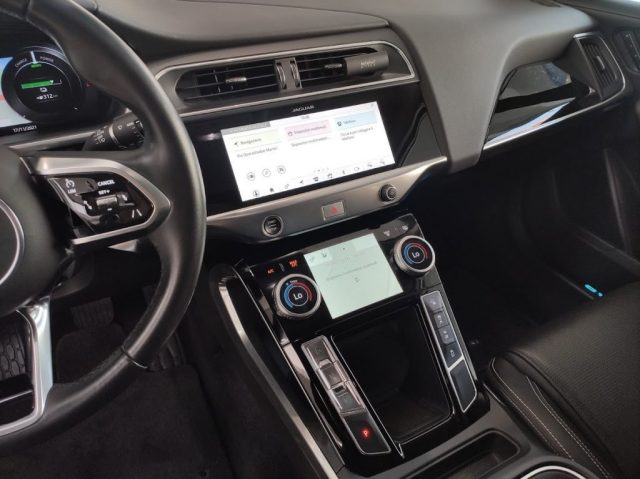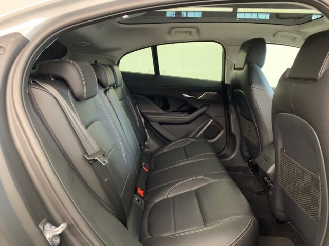 ABS, ABS, Adaptive Cruise Control, Airbag, Airbag a tendina, Airbag guida, Airbag laterali, Airbag laterali, Airbag passeggero, Airbag Passeggero, Airbag testa, Alette parasole con luce di cortesia, Allarme perimetrico, All Surface Progress Control (ASPC), All Wheel Drive (AWD), Android Auto, Antifurto, Apertura portellone posteriore elettrica (apertura /chiusura), Apple CarPlay, Appoggiatesta posteriori, Autoradio, Autoradio digitale, Avviso mancato allacciamento cinture di sicurezza, Badge EV400, Badge SE, Blind Spot Assist, Bluetooth, Bracciolo, Bracciolo anteriore, bracciolo posteriore, Bracciolo posteriore centrale, Cambio automatico, Cambio Automatico, Cavo di ricarica multifunzione (Cavo Modo 2 16A), Cavo di ricarica pubblico, Cerchi in lega, Cerchi in lega da 20", Chiusura centralizzata, Chiusura centralizzata, Clima Automatico Bizona, Climatizzatore, Climatizzatore automatico a due zone, Comando Chiusura/Apertura centralizzata presente sulla portiera del guidatore, Controllo adattivo di crociera con Stop & Go, Controllo elettronico della corsia, Controllo trazione, Controllo volume dinamico, Cornici dei finestrini laterali cromate, Cristalli ad attenuazione luce solare, Cruise Control, Differenziale aperto + Torque Vectoring, Display Interattivo per il conducente, Dispositivo di ausilio alla frenata di emergenza (EBA), Driver Condition Monitor, Dynamic Stability Control (DSC), ESP, Fari a LED con luci diurne caratteristiche, Fari con livellamento automatico, Fari LED, Frenata d'emergenza assistita, Freno di emergenza, Freno di stazionamento elettronico (EPB), Ganci nel vano di carico, Getto lavafari, Griglia Gloss Black con rifinitura cromata satinata, Hill Launch Assist - assistenza per partenza in salita, Illuminazione console superiore, Immobilizzatore elettronico, InControl Apps, InControl Pro Services per il periodo di garanzia e Wi-fi Hotspot, InControl Remote, InControl Secure, Indicatore usura pastiglie freni, indicatori di cambio corsia, Inserti in Gloss Black, Interni in pelle, Jaguar Drive Control, Keyless Entry, Lame paraurti anteriore in Gloss Black, Lane Keep Assist, Logo e scritta Jaguar, Low Traction Launch, Luci di lettura posteriori a LED, Luci fendinebbia posteriori, Lunotto Riscaldabile con Timer, Maniglie delle porte anteriori interne con interruttori di blocco separati, Maniglie delle portiere esterne a scomparsa, Meridian Sound System (380W), Monitor rilevamento di uscita laterale passeggero posteriore, Navigation Pro, Parabrezza acustico laminato, Paraurti posteriore con grembialatura Gloss Black, Park Assist, Portabicchieri anteriori e posteriori, Portaoggetti anteriore, Portaoggetti richiudibile, Presa 12V nel portabagagli, Prese ausiliari, Radio AM/FM, Regolazione elettrica sedili, Ricarica Programmabile, Riconoscimento dei segnali stradali, Rilevatore temperatura esterna, Rilevazione del traffico in retromarcia, Rivestimento padiglione in Morzine colore Light Oyster, Rivestimento portiere in Gloss Black, Schienale post 40/20/40, Sedile guida reg. in altezza, Sedile posteriore sdoppiato, Sedili anteriori elettrici a 10 regolazioni con funzione memoria, Sedili posteriori ripiegabili 60/40, Sedili sport Ebony in pelle goffrata con interni Ebony/Ebony, Sensore di luce, Sensore di pioggia, Sensori di parcheggio posteriori, Servosterzo, Servosterzo elettrico (EPAS) ad assistenza variabile, Sistema di chiusura per bambini ad azionamento elettrico, Sistema di monitoraggio della pressione degli pneumatici (TPMS), Navigatore satellitare, Sistema di riparazione pneumatici, Sistema frenante rigenerativo ottimizzato, Smart Settings, Sospensioni passive, Sospensioni spirali, Specchietti laterali elettrici, Specchietti retrovisori esterni in tinta con la carrozzeria, Specchietto retrovisore interno fotocromatico, Spoiler portellone posteriore, Stivaggio per occhiali da sole, Stivaggio sotto i sedili posteriori, Tappetini Ebony, Telecamera per parcheggio assistito, Telecamera posteriore con guida al parcheggio, Tergicristalli con sensore pioggia, Tergicristalli intermittenti variabili, Terzo poggiatesta posteriore, Tetto standard, Touch Pro Duo, Touch Pro System, Vano di Carico - Punti di ancoraggio bagagli, Vetro attenuante luce solare per parabrezza, Voice control, Volante Sport in pelle goffrata Soft