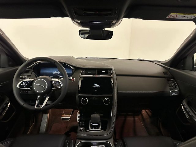 ABS, ABS, Airbag, Airbag a tendina, Airbag guida, Airbag laterali, Airbag laterali, Airbag passeggero, Airbag Passeggero, Airbag testa, Alette parasole con luce di cortesia, Allarme perimetrico, Alzacristalli elettrici posteriori, Android Auto, Antifurto, Apertura portellone posteriore manuale, Apple CarPlay, Appoggiatesta posteriori, Autoradio, Autoradio digitale, Avviso mancato allacciamento cinture di sicurezza, Badge EV400, Badge S, Bluetooth, Bracciolo, Bracciolo anteriore, Bracciolo posteriore centrale, Cambio automatico, Cambio Automatico, Cavo di ricarica multifunzione, Cavo di ricarica pubblico, Cerchi in lega, Cerchi in lega da 18 ", Chiusura centralizzata, Chiusura centralizzata, Climatizzatore, Climatizzatore automatico a due zone, Comando Chiusura/Apertura centralizzata presente sulla portiera del guidatore, Controllo elettronico della corsia, Controllo trazione, Controllo volume dinamico, Cristalli ad attenuazione luce solare, Cruise Control, DAB (Digital Audio Broadcasting), Differenziale aperto + Torque Vectoring, Display Interattivo per il conducente, Dispositivo di ausilio alla frenata di emergenza (EBA), Dispositivo per frenata di emergenza, Driver Condition Monitor, Dynamic Stability Control (DSC), ESP, Fari a LED, Fari con livellamento automatico, Fari LED, Frenata d'emergenza assistita, Freno di stazionamento elettronico (EPB), Ganci nel vano di carico, Getto lavafari, Hi-Fi Meridian, Hill Launch Assist - assistenza per partenza in salita, Illuminazione console superiore, Immobilizzatore elettronico, InControl Remote, InControl Secure, Indicatore usura pastiglie freni, indicatori di cambio corsia, Inserti in Gloss Black, Instant Mobility System, Jaguar Drive Control, Keyless Entry, Lane Keep Assist, Logo e scritta Jaguar, Low Traction Launch, Luci di lettura posteriori a LED, Luci fendinebbia posteriori, Lunotto Riscaldabile con Timer, Maniglie delle porte anteriori interne con interruttori di blocco separati, Maniglie delle portiere esterne a scomparsa, Meridian Sound System (380W), Navigation Pro, Online Pack con Data Plan, Parabrezza acustico laminato, Pivi Pro (Connected), Portabicchieri anteriori e posteriori, Portaoggetti anteriore, Portaoggetti richiudibile, Presa 12V nel portabagagli, Prese ausiliari, Radio AM/FM, Regolazione elettrica sedili, Ricarica Programmabile, Riconoscimento dei segnali stradali, Rilevatore temperatura esterna, Rivestimento padiglione in Morzine colore Light Oyster, Sedile guida reg. in altezza, Sedile posteriore sdoppiato, Sedili anteriori parzialmente elettrici a 8 regolazioni, Sedili Ebony Luxtec sport con interni Ebony/Ebony, Sedili posteriori ribaltabili 40:20:40 con poggiatesta e bracciolo centrale, Sedili posteriori riscaldabili, Sensore di luce, Sensore di pioggia, Sensori di parcheggio posteriori, Servosterzo, Servosterzo elettrico (EPAS) ad assistenza variabile, settaggio guida sportiva, Sistema di chiusura per bambini ad azionamento elettrico, Sistema di monitoraggio della pressione degli pneumatici (TPMS), Navigatore satellitare, Sistema di riparazione pneumatici, Sistema frenante rigenerativo ottimizzato, Sospensioni passive, Sospensioni spirali, Specchietti elettrici/ripiegabili, Specchietti laterali elettrici, Specchietto retrovisore interno fotocromatico, Spoiler portellone posteriore, Stivaggio per occhiali da sole, Stivaggio sotto i sedili posteriori, Surround Camera 3D, Tappetini Ebony, Tergicristalli con sensore pioggia, Tergicristalli intermittenti variabili, Terzo poggiatesta posteriore, Tetto standard, Touch Pro System, Vano di Carico - Punti di ancoraggio bagagli, Voice control, Volante in pelle con bordo diviso