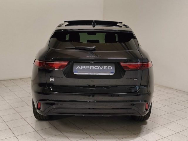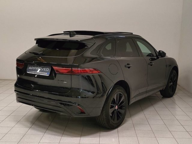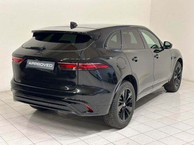 5° posto, ABS, Adaptive Cruise Control, Airbag, Airbag laterali, Airbag laterali, Airbag Passeggero, Airbag testa, Alette parasole con luce di cortesia, All Surface Progress Control (ASPC), Alzacristalli elettrici posteriori, Android Auto, Apertura portellone posteriore elettrica (apertura /chiusura), Apple CarPlay, Autoradio, Autoradio digitale, Avviso cinture di sicurezza, Badge F-Pace, Badge F-Pace R-Dynamic, Badge P400 AWD, Barre longitudinali al tetto Nero Lucide, Black Design Pack, Black Exterior Pack, Blind Spot Assist, Bluetooth, Bocchette climatizzatore per i passeggeri posteriori, Bracciolo, Brake pad wear indicator, Cambio automatico, Cambio Automatico, Cavo di ricarica pubblico, Cerchi in lega, Cerchi in lega da 20", Chiusura centralizzata, Climatizzatore, Climatizzatore a due zone, Climatizzatore funzione estesa, Console centrale con bracciolo, Console centrale con vano laterale, Controllo trazione, Cruise Control, Cruise control adattivo, DAB (Digital Audio Broadcasting), Differenziale aperto con Torque Vectoring by Braking (TVBB), Dinamica configurabile, Display Interattivo per il conducente, Dispositivo di ausilio alla frenata di emergenza (EBA), Dispositivo per frenata di emergenza, Doppio portabicchieri frontale, Dynamic Stability Control (DSC), Eco HMI con analisi dei parametri di guida, ESP, Fari a LED, Fari a LED premium con luci diurne caratteristiche, Fari automatici, Fari con abbaglianti assistiti, Fari LED, Frenata d'emergenza assistita, Freni anteriori da 380 mm e posteriori da 325 mm, Freno di stazionamento elettrico (EPB), Ganci nel vano di carico, Gancio appendi-borsa, Hill Launch Assist - assistenza per partenza in salita, Ibrida, Illuminazione console superiore, Illuminazione interna Premium, Immobilizzatore elettronico, InControl Remote, Indicatori cambio corsia, Indicatori direzionali animati, Inserto in frassino Satin Charcoal, Interni in pelle, Jaguar Drive Control, Keyless Entry, Lane Keep Assist, Leve di sbloccaggio da remoto del sedile posteriore, Logo e scritta Jaguar, Luci fendinebbia posteriori, Lunotto riscaldato, Maniglie delle porte anteriori interne con interruttori di blocco separati, Meridian Sound System (380W), Monitoraggio delle condizioni del guidatore, Monitor rilevamento traffico in uscita posteriore, Online Pack con Data Plan, Palette del cambio cromate satinate, Pedaliera in metallo lucidato, Pinze freni rosse, Pivi Pro (Connected), Pneumatici estivi, Poggiatesta anteriori passivi con prevenzione del colpo di frusta, Portaoggetti con serratura, Presa USB, Pulsante Start, Regolazione elettrica sedili, Ricarica in AC (Corrente Alternata), Riconoscimento dei segnali stradali, Rilevatore temperatura esterna, Rivestimento padiglione Ebony in tessuto Morzine, Secure Tracker 12 mesi, Sedile posteriore sdoppiato, Sedili ant con memorie, Sedili posteriori ribaltabili 40:20:40 con poggiatesta e bracciolo centrale, Sedili Sport in pelle goffrata Ebony con interni Ebony/Ebony, Sensore appannamento, Sensore di luce, Sensore di pioggia, Sensori di parcheggio posteriori, Sensori parcheggio anteriori e posteriori, Sequenza di accensione: movimenti, quadrante e illuminazione, Servosterzo, Servosterzo elettrico (EPAS), settaggio guida sportiva, Sistema di chiusura per bambini ad azionamento elettrico, Sistema di controllo pressione pneumatici (TPMS), Navigatore satellitare, Sistema posteriore di ancoraggio ISOFIX per seggiolino bambini, Soglie di ingresso in metallo con scritta R Dynamic, Sospensioni Adaptive Dynamics, Sospensioni pneumatiche, Specchietti elettrici/ripiegabili, Specchietti laterali elettrici, Specchietto retrovisore interno fotocromatico, Telecamera per parcheggio assistito, Telecamera posteriore, Tergicristalli con sensore pioggia, Tergicristalli intermittenti variabili, Terzo poggiatesta posteriore, Tetto panorama, Tetto panoramico fisso, Trailer Stability Assist (TSA), Vano di Carico - Punti di ancoraggio bagagli, Vano portaoggetti delle portiere anteriori, Vano portaoggetti delle portiere posteriori, Vetri oscurati, Voice control