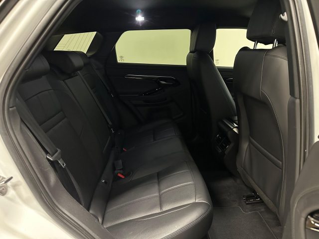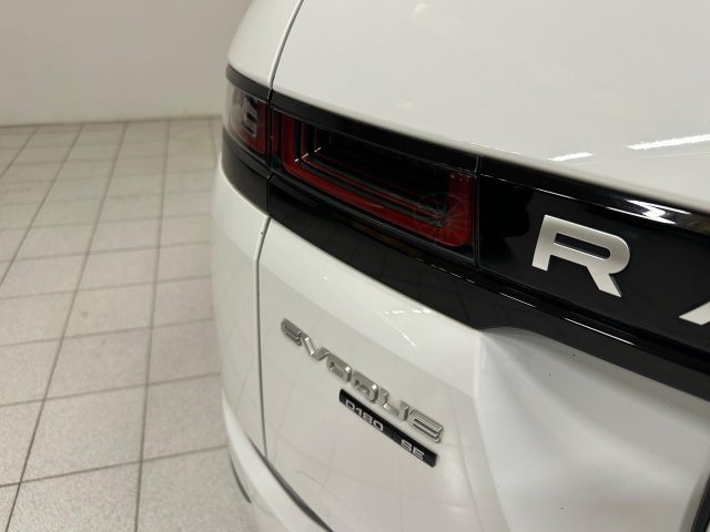 Airbag guida, Airbag laterali anteriori, Airbag passeggero con rilevatore occupante del sedile, Alette parasole con luce di cortesia, All Terrain Progress Control (ATPC), AM/FM radio, Android Auto, Apertura portellone posteriore elettrica (apertura/chiusura), Avviso cinture di sicurezza slacciate, Badge D180, Badge - Evoque, Badge SE, Bocchette climatizzatore per i passeggeri posteriori, Brake pad wear indicator, Cambio automatico a 9 rapporti, Chiusura automatica delle portiere configurabile, Climatizzatore a 2 zone, Colonna sterzo regolabile manualmente, Computer di bordo, Controllo elettronico della trazione (ETC), Differenziale elettronico attivo con Torque Vectoring by Braking, Display interattivo per il conducente, Dispositivo di Ausilio alla Frenata di Emergenza (EBA), Doppi portabicchieri anteriori con copertura, Dynamic Stability Control (DSC), ECO HMI con Analisi dei Parametri di Guida, Efficient Drive Line, Emergency Braking, Fari a LED premium con luci diurne caratteristiche, Fari automatici, Fari automatici (sensore crepuscolare), Fari con abbaglianti assistiti, Fari con livellamento automatico, Finestrini elettrici con chiusura\apertura one-touch, Finiture interne in Gradated Linear Bright Aluminium, Freno di stazionamento elettrico (EPB), Ganci nel vano di carico, Hill Descent Control (HDC), Hill Launch Assist, Illuminazione console superiore, InControl Apps, InControl Pro Services per il periodo di garanzia e Wi-fi Hotspot, InControl Remote, In Control Touch Pro - Sistema di navigazione satellitare SSD, Lane Keep Assist, Low Traction Launch, Luce del vano di carico, Luce STOP in alta posizione nel centro, Luci fendinebbia posteriori, Luci interne, Lunotto riscaldabile con timer, Maniglie delle porte anteriori interne con interruttori di blocco separati, Maniglie delle portiere esterne a filo, Monitoraggio condizioni del guidatore, Monitor rilevamento di uscita posteriore, Park Assist, Pneumatici All-season, Poggiatesta anteriori passivi con prevenzione del colpo di frusta, Poggiatesta posteriori, Power Socket Pack 1 (fornisce 2 porte USB e 3 prese da 12V), Preparazione per il gancio elettrico, Presa USB, Pulsante avvio motore - START, Rilevamento traffico in retromarcia, Rilevatore temperatura esterna, Ripartitore della forza frenante (EBD), Rivestimento padiglione Light Oyster in tessuto Morzine, Sedile posteriore ribaltabile 40:20:40, Sedili anteriori elettrici a 14 regolazioni con funzione memoria, Sedili Ebony in pelle arricchita con interni Ebony/Ebony, Sequenza di Accensione: movimenti, quadrante e illuminazione, Serbatoio carburante standard (65L), Serbatoio UREA standard (17L), Servosterzo elettrico (EPAS), Sistema di chiusura per bambini ad azionamento elettrico, Sistema di controllo pressione pneumatici (TPMS), Sistema di riparazione pneumatici, Sistema Frenante AntiBloccaggio (ABS), Sistema posteriore di ancoraggio ISOFIX per seggiolino bambini, Smart Settings, Soglie standard, Sospensioni passive, Sound System (180W), Specchietto retrovisore interno fotocromatico, Spoiler sul portellone posteriore, Stivaggio per occhiali da sole, Telecamera posteriore, Tergicristalli con Sensori pioggia, Terrain Response 2 - Automatico, Tetto in tinta con la carrozzeria, Tetto standard, Touch Pro Duo, Trailer Stability Assist (TSA), Vano di carico - punti di ancoraggio bagagli, Voice control, Volante in pelle con comandi multifunzione