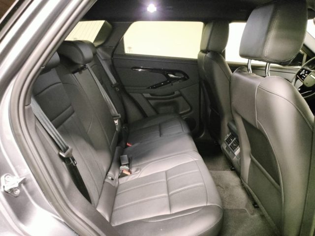 3 posti posteriori, ABS, Airbag, Airbag laterali, Airbag Passeggero, Airbag (RR Evoque), Airbag testa, Alette parasole con specchietto di cortesia illuminato (guidatore e passeggero), Apertura finestrini attraverso telecomando vettura, Autoradio, Avviso acustico cintura di sicurezza, Bluetooth, Body Style - SE, Bracciolo centrale posteriore con 2 portabicchieri, Business Pack - SE, Cambio automatico a 9 rapporti con paddle shift e sport mode, Cerchi in lega, Cinture di sicurezza a 8 regolazioni, Climatizzatore, Controllo della coppia di resistenza del motore (EDC), Controllo elettronico della corsia, Controllo Elettronico della Trazione (TCS), Controllo frenata di emergenza (EBA), Controllo trazione, Copertura vano bagagli, Cruise Control, Dadi antifurto per cerchi in lega, Efficient Driveline, ESP, Fendinebbia, Finiture interne in Satin Brushed Alluminium, Freno di stazionamento elettrico (EPB), Hill Descent Control (HDC), Immobilizzatore elettronico, InControl Protect, Interni in pelle, Kit di riparazione pneumatici, Luci di lettura con accensione a sfioramento, Luci interne soffuse, Lunotto termico, Piantone dello sterzo regolabile manualmente (4 regolazioni), Presa elettrica 12V (anteriore e vano di carico), Punti di ancoraggio ISOFIX - Sedile bambini, Regolazione elettrica sedili, Riconoscimento dei segnali stradali, Rimozione Badge posteriore motore, Rivestimento del cielo in tessuto Morzine in Cirrus, Sedile posteriore sdoppiato, Sedili elettrici a 8/8 regolazioni (guidatore e passeggero), Sedili in pelle pieno fiore, Sedili posteriori ribaltabili 60:40, Sensori di parcheggio posteriori, Sensori parcheggio posteriori, Servosterzo, Servosterzo Elettronico (EPAS), Singola presa USB (ricarica e multimediale), Navigatore satellitare, Sistema di partenza assistita (on-road ed off-road), Sistema frenante antibloccaggio (ABS), Sistema monitoraggio pressione pneumatici (TPMS), Specchietti laterali elettrici, Specchietti retrovisori ripiegabili elettricamente con proiezione grafica Evoque, Tappetini, Tasto di Avvio/Spegnimento Motore, Tecnologia Start e Stop intelligente, Telecomando Range Rover Smart Key, Terrain Response, Terzo poggiatesta posteriore, Tetto e spoiler dello stesso colore della carrozzeria, Torque Vectoring by Braking, Vano portaoggetti consolle centrale, Volante in pelle Oxford con comandi audio e cruise control