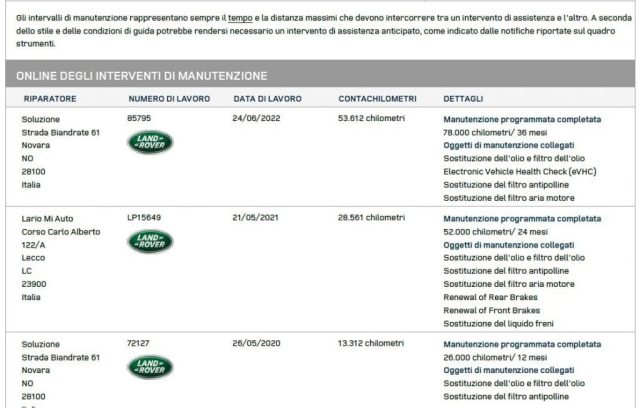 Tagliandi effettuati regolarmente presso LAND ROVER :